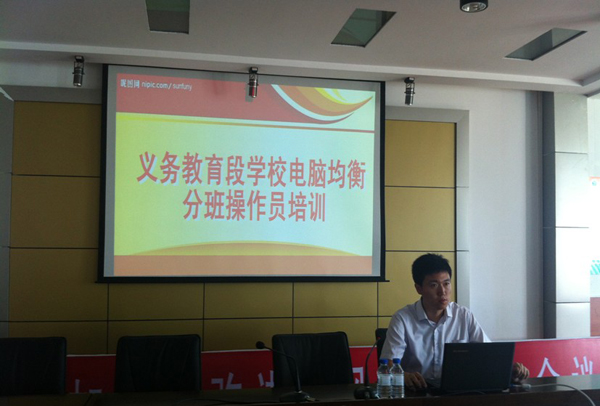 九台市教育局于2012年8月10日举办均衡分班系统操作培训班,并邀请我公司实施工程师刘超讲解均衡分班系统操作方法。全市各中小学信息中心教师共60余人参加了培训。 九台市使用的均衡分班系统是我公司提供的升级版本,内置小升初分值分班、小升初等第分班、小学入学随机分班、小学入学分值分班四种随机均衡分班模式,学校可以根据本校实际选择不同的方式实现均衡分班。九台市教育局要求全市各小学统一使用小学入学随机分班模式;中学统一使用小升初分值分班模式。学校分班时要邀请人大代表、政协委员、纪检监察等有关部门人员和50—60名家长到现场实时监督,做到公开透明,公正公平,阳光分班,促进全市教育公平和均衡发展。