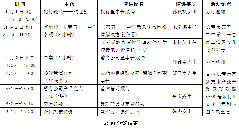 慧海公司基地校“长春市第五十二中学”参观交流会议程: