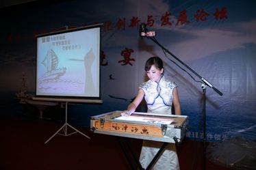节目表演中,沙画表演展现了慧海公司精神和取得的成果,受到现场所有参会人的掌声
