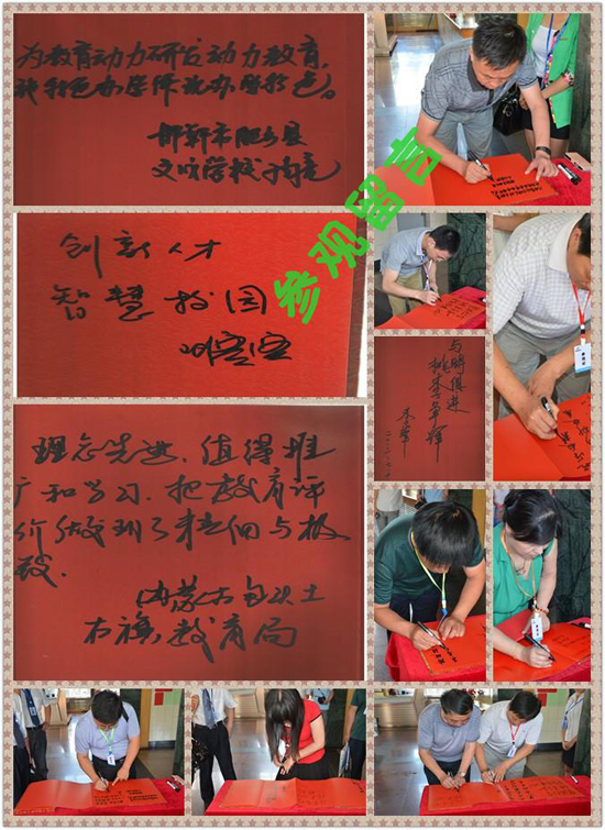 第八期慧海基地校参观活动于2013-7-10举行。参加本次活动的人员来自全国各地——有深圳的邓总、南京的余总、河北肥乡县周校长、沈阳齐总、沈阳某学校的德育老师、信息中心主任以及哈尔滨的赵总,总参观人数达到了23人。本次活动安排了慧海公司高级顾问分享产品理念、基地校特色教学主任宋振财老师交流了学校先后发展的情况以及信息中心主任宋学鹏老师展示了软件系统操作情况,活动有序进行,并受到了参观人员的一致好评。会后大家合影留念,并真诚的写下了此次参观活动的内心感受及对教育改革的决心和信心!