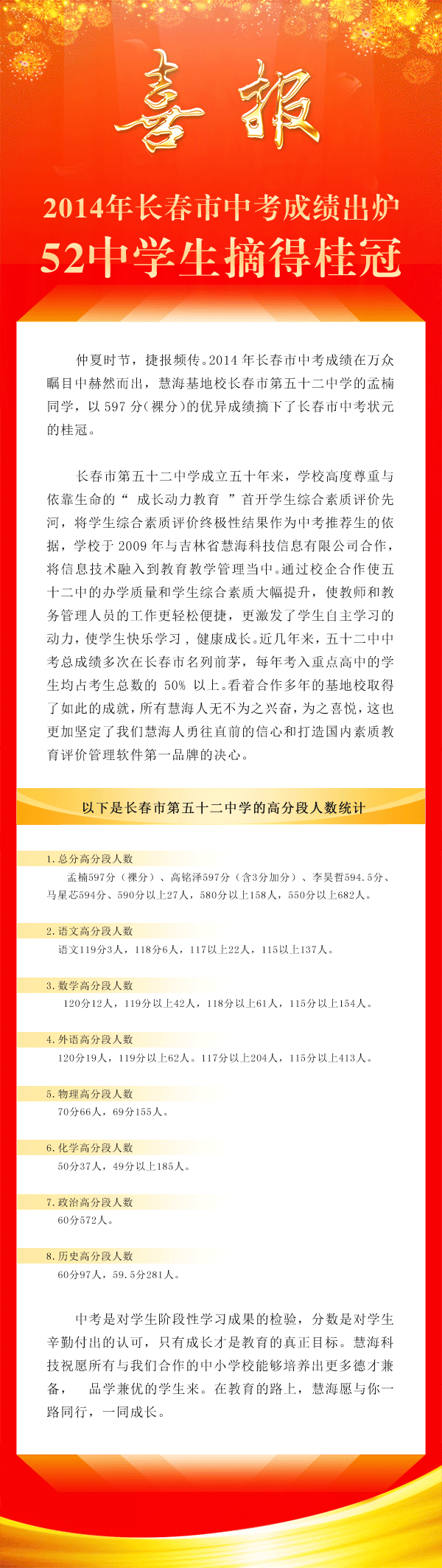 喜报:2014年长春市中考成绩出炉 52中学生摘得桂冠