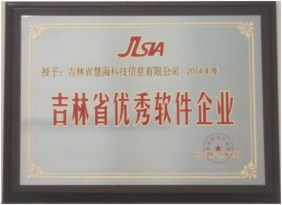 在2015年1月23日召开的吉林省软件行业协会第三届理事会第二次会员代表大会暨2014吉林省“优秀软件企业、优秀软件产品、优秀软件人才”评选表彰大会上,吉林省慧海科技荣获“优秀软件企业”殊荣,这已是吉林省慧海科技第二次获得此项荣誉。