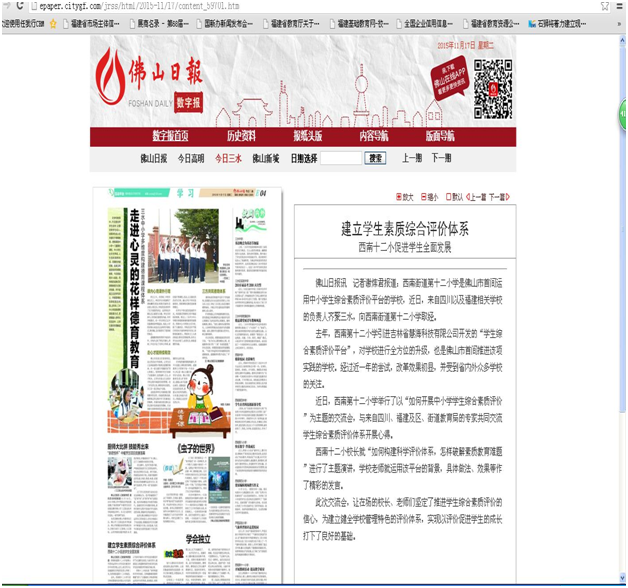 佛山日报报道慧海用户学生评价平台应用取得明显效果