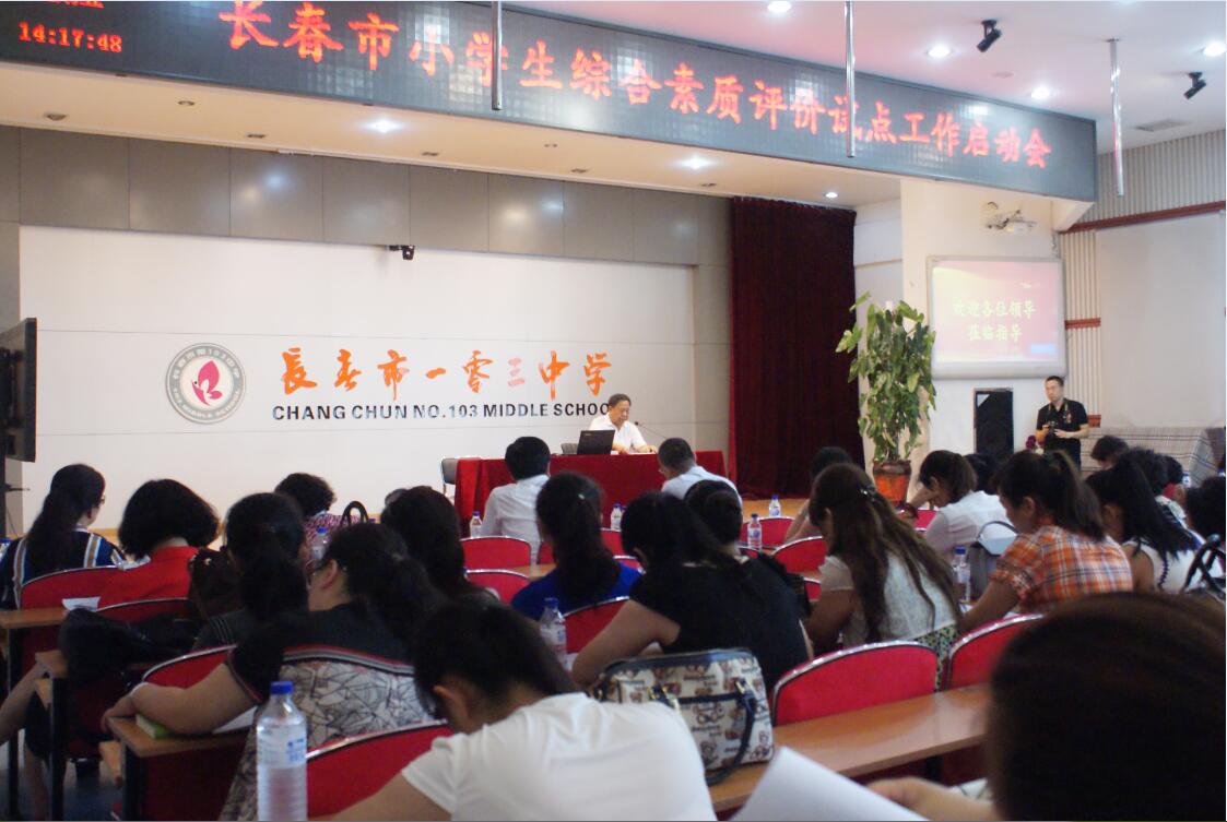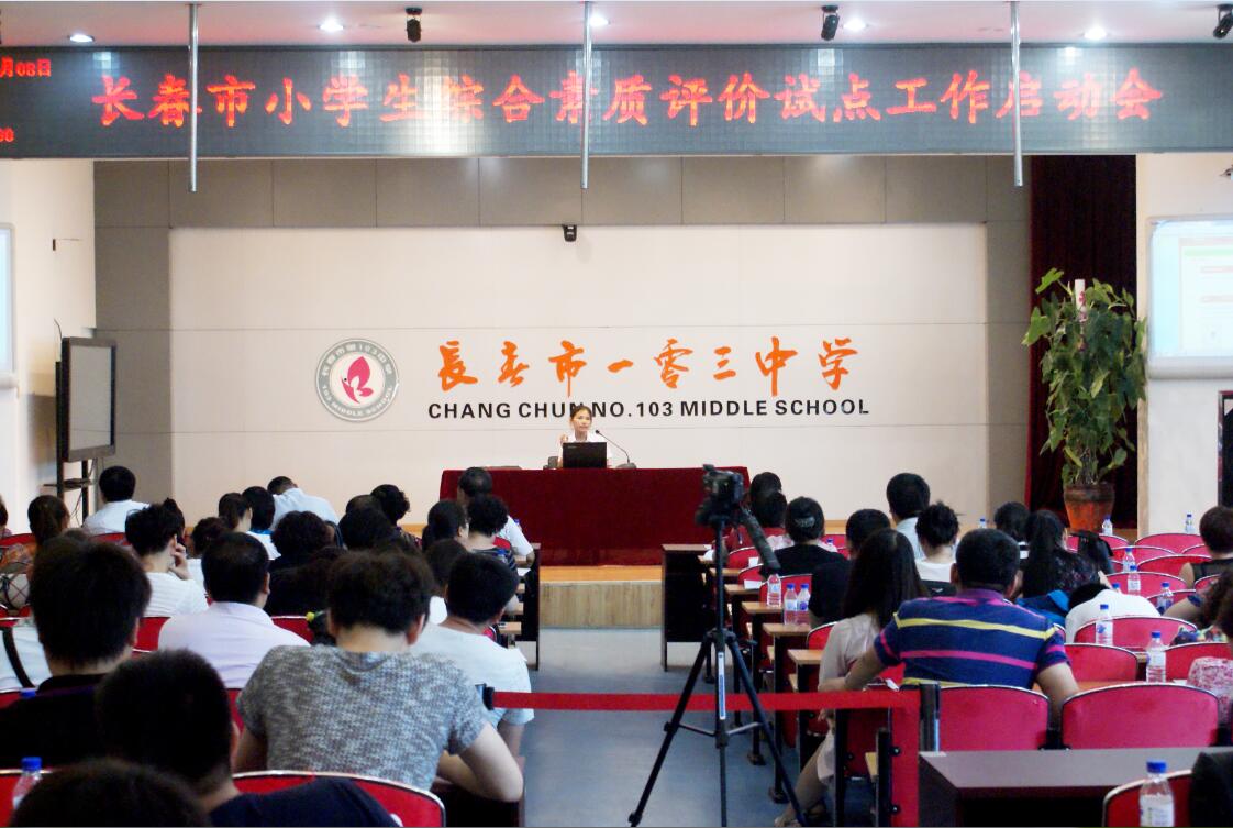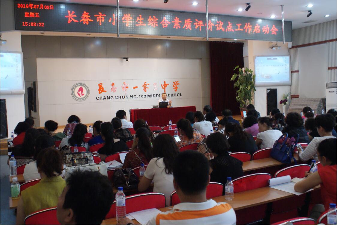 在2014年长春市中学生综合素质评价信息化管理平台应用试点,并于2015年在长春地区289所中学全面铺开的基础上,长春市教育局于2016年7月8日,在长春市第103中学召开长春市小学生综合素质评价信息化试点工作启动会。长春市各县(市)区基教科科长及参与试点工作的77所学校代表参加了会议。长春市教育局基础教育处处长曲虹、长春市电教馆馆长梁世宝、长春市教育局教研室主任逯成文、慧海科技信息有限公司总经理郑彦臣出席会议。